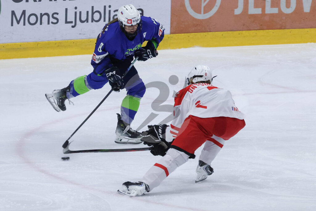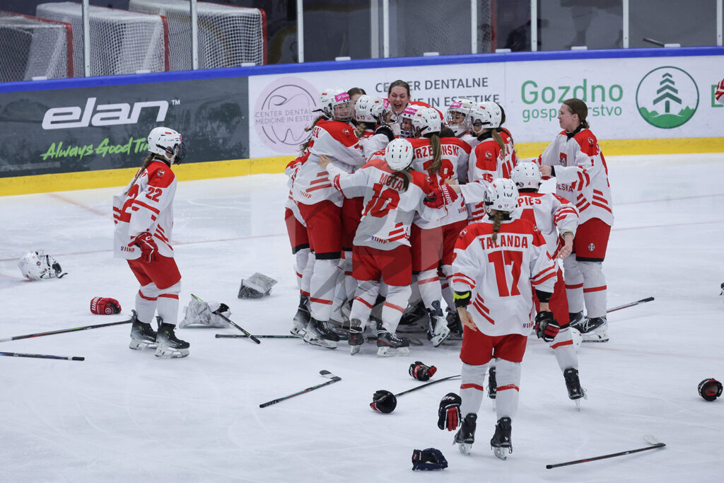 Za slovensko izbrano vrsto je v boju za napredovanje v višji kakovostni rang štela le zmaga po rednem delu tekme. Tako bi se po točkah izenačila s Poljsko in odločala bi medsebojna tekma. Poljakinje, ki na tem turnirju še niso doživele poraza, so bile na tej tekmi izrazite favoritinje, kar so tudi dokazale na ledu. Že od prvega sodniškega meta so zagospodarile na igrišču in konstantno oblegale slovenska vrata. Varovanke Boštjana Kosa so neodločen izid držale do 17. minute, ko je terensko premoč Poljske z golom kronala Wiktoria Sikorska. Tudi v nadaljevanju smo spremljali podobno sliko, Poljakinje so dominirale v vseh aspektih igre in po pol ure igre prišle še do drugega zadetka. Ob igri z igralko manj je bila uspešna Natalia Nosal. V zadnji tretjini so se poljske hokejistke trudile še povišati prednost, a je odlična Ajda Jošt v vratih Slovenije zaklenila svoja vrata. Mlada vratarka, članica Triglava iz Kranja, za katero je to sploh prvo svetovno prvenstvo, je zaustavila kar 67 od 69 strelov in bila glavni razlog da se je tekma končala “le” z 2-0 za Poljsko.
